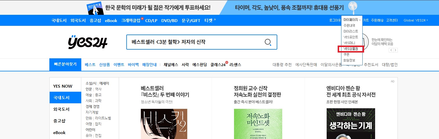 ※로그인 후 마이페이지->yes상품권 클릭 : 5,000원 상품권확인